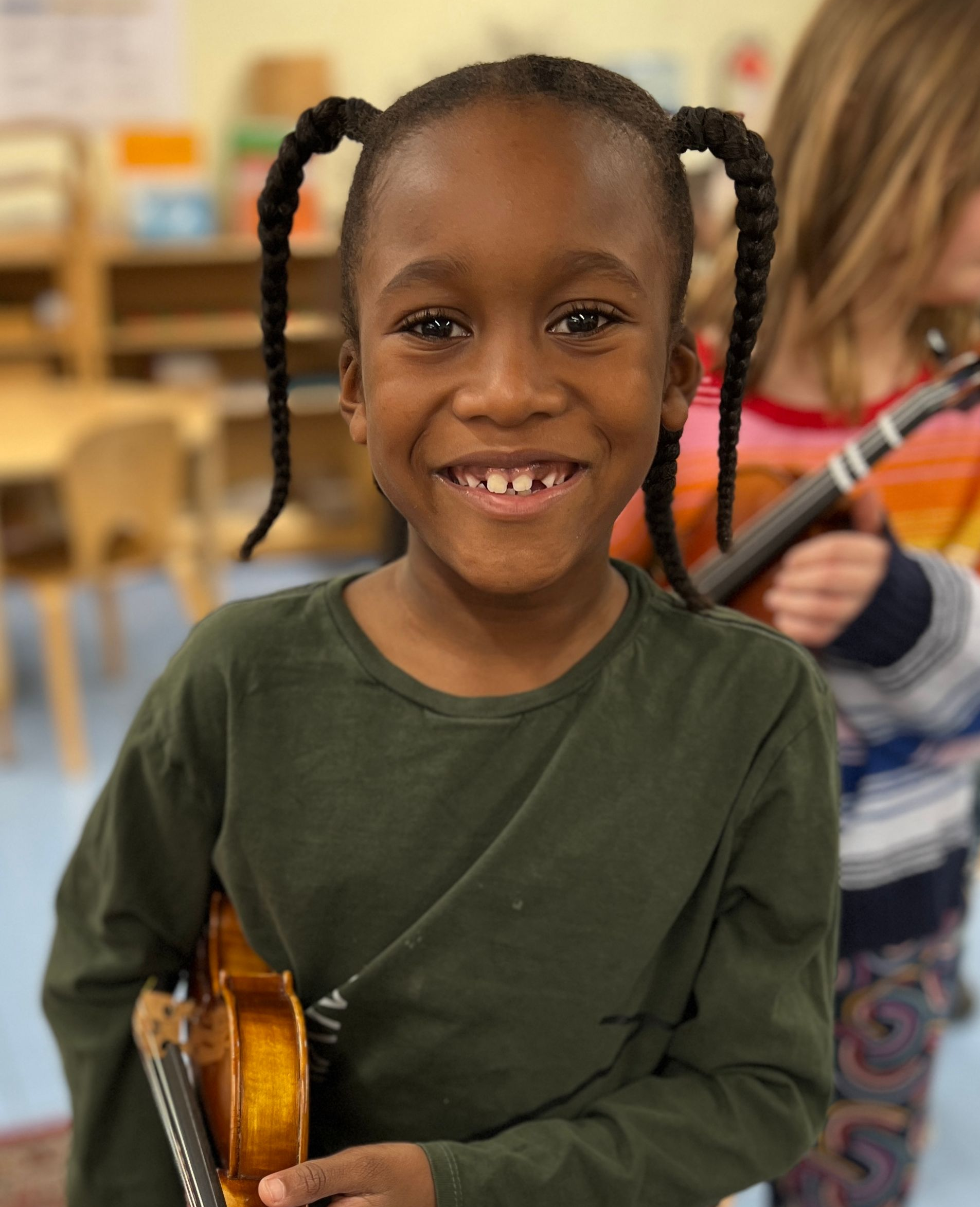 Children ages 3 and up participate in the violin studio, which offers lessons, ensemble and music literacy classes, and performances.